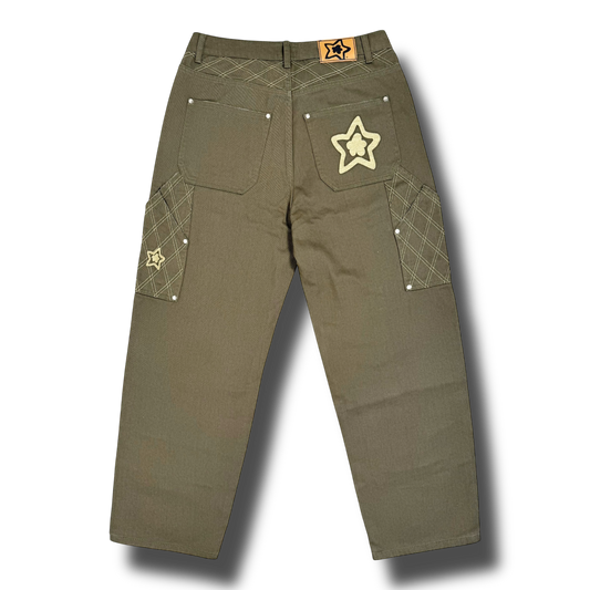 CROSS STITCH DOUBLE KNEE JEANS OLIVE