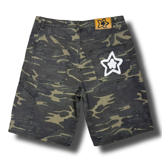DOUBLE KNEE SEAM JEAN SHORTS OLIVE
