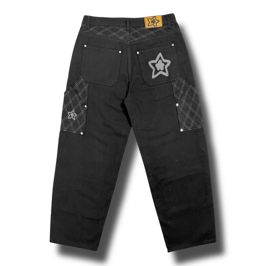 CROSS STITCH DOUBLE KNEE JEANS BLACK