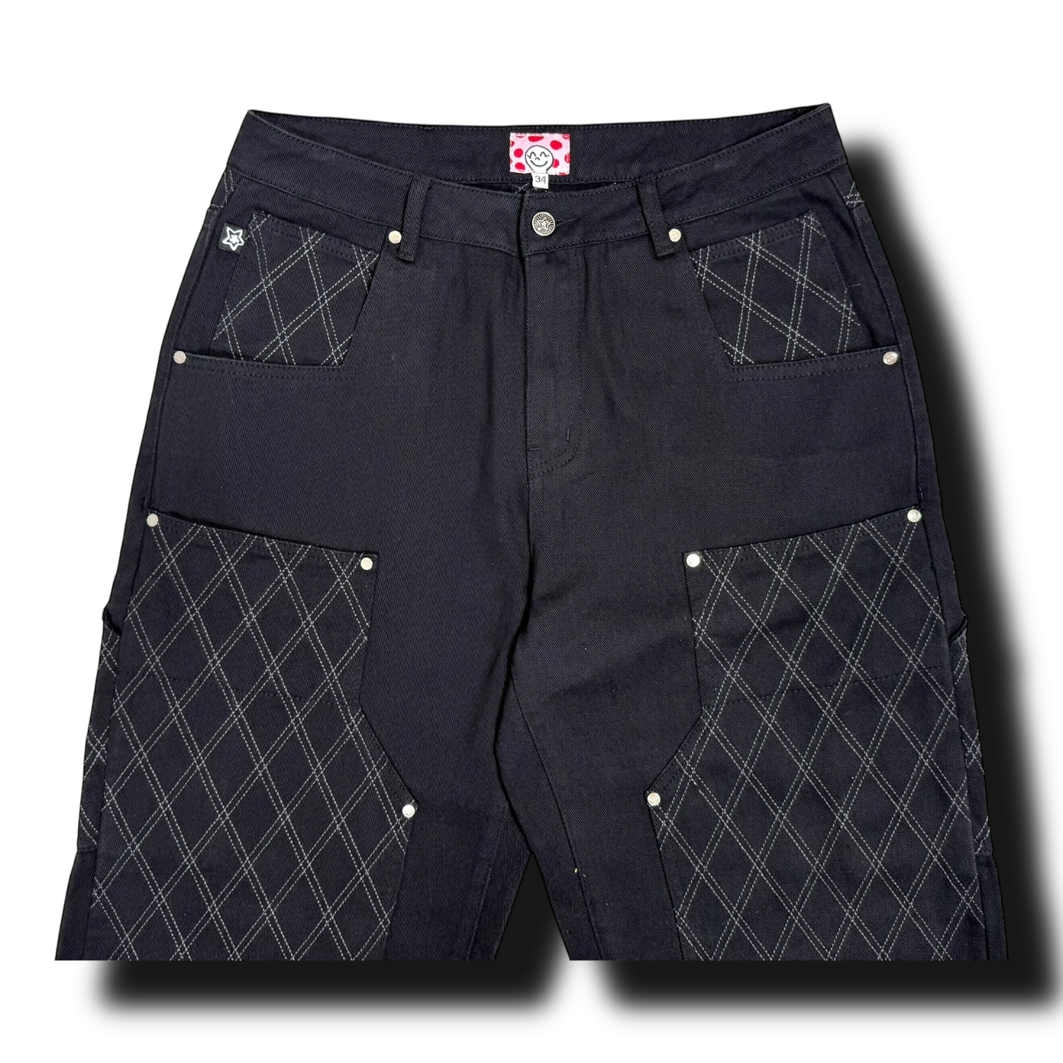 CROSS STITCH DOUBLE KNEE JEANS BLACK