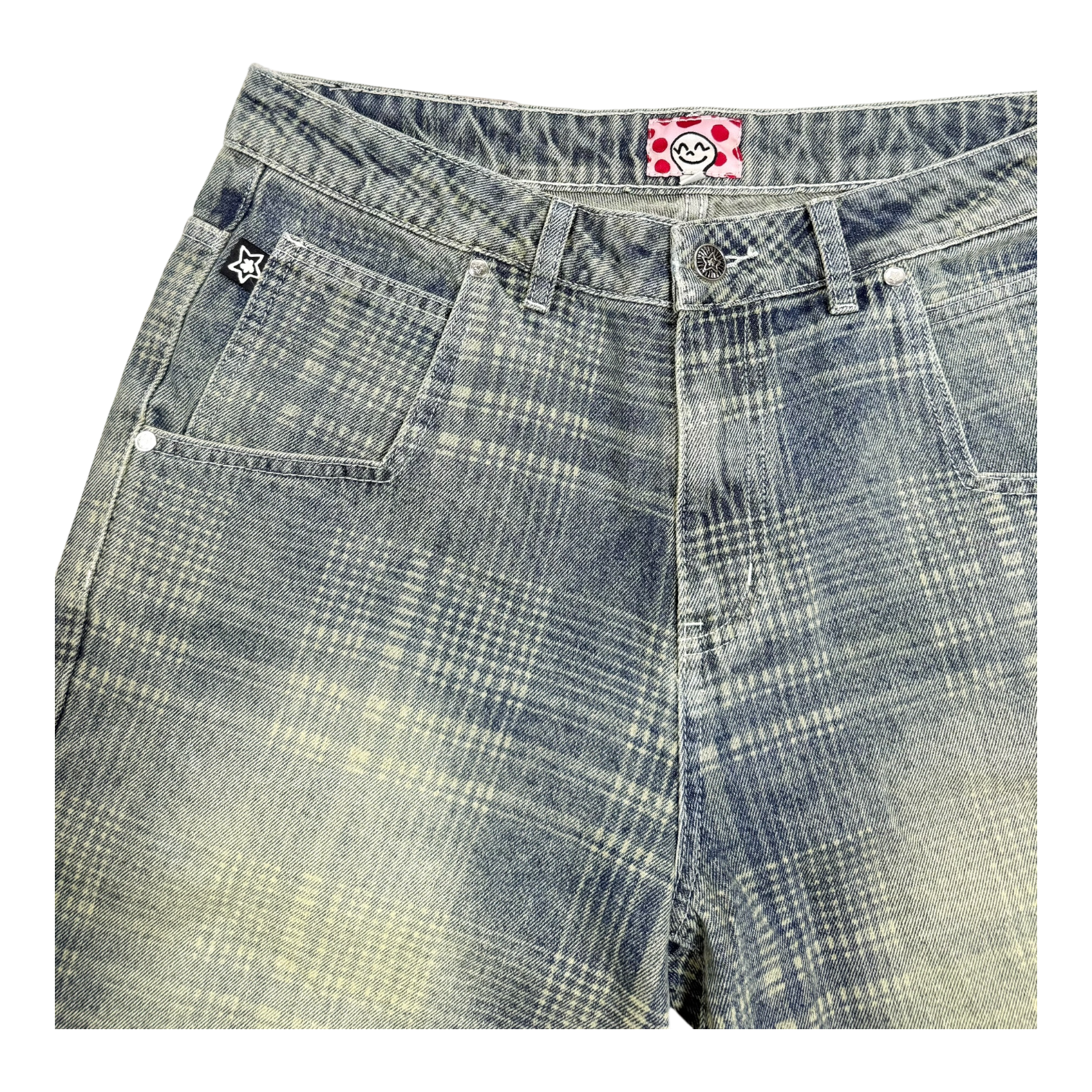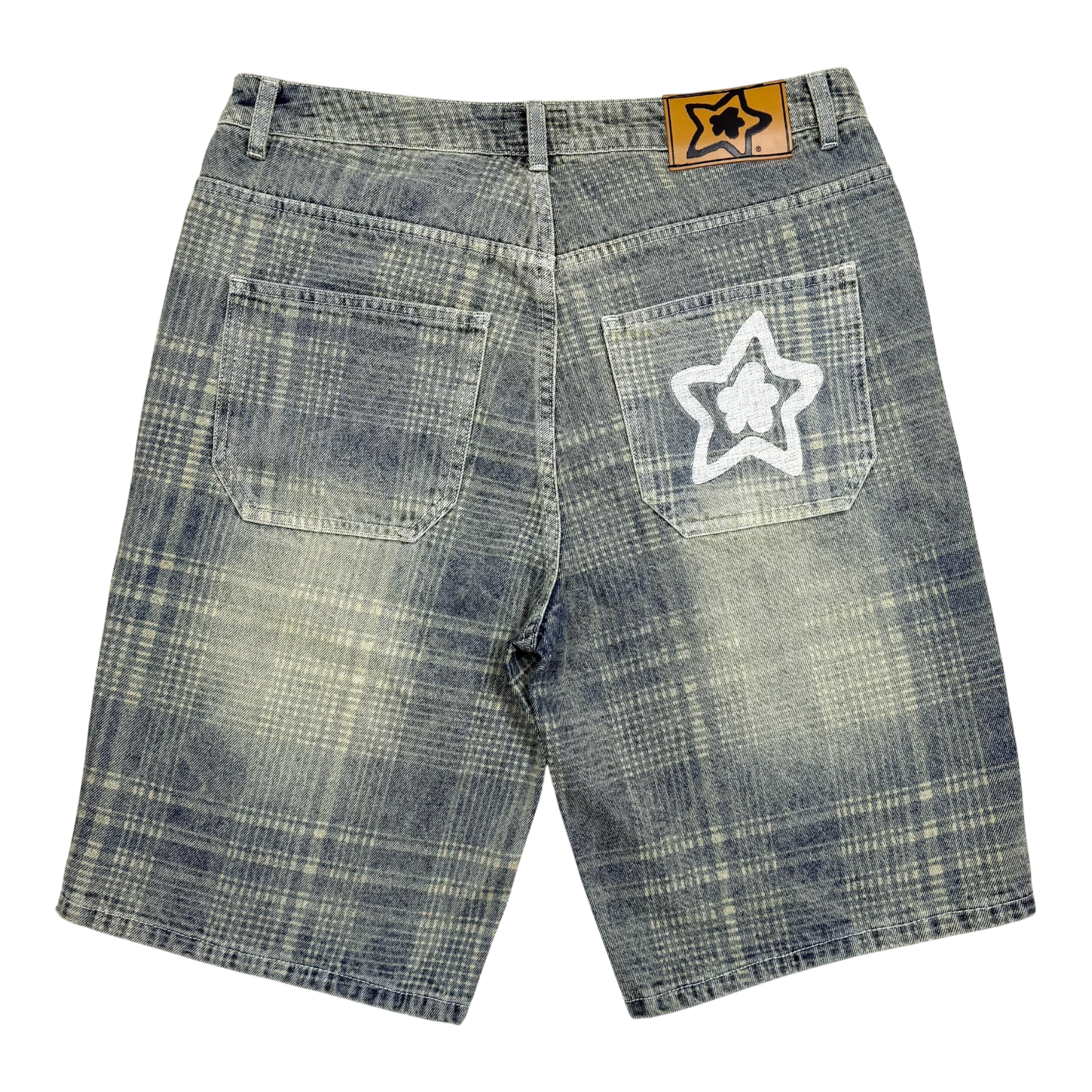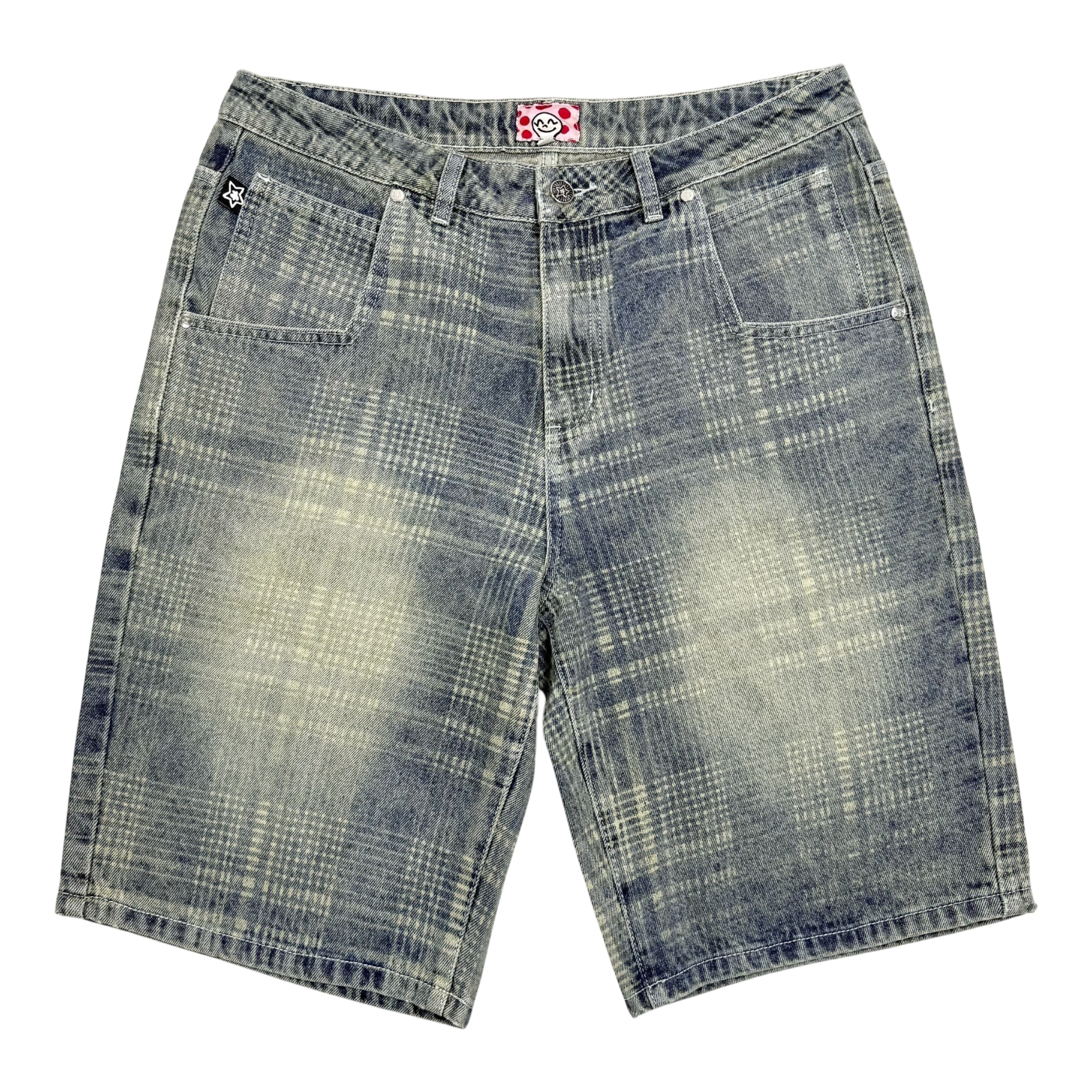 PLAID JEAN SHORTS BLUE