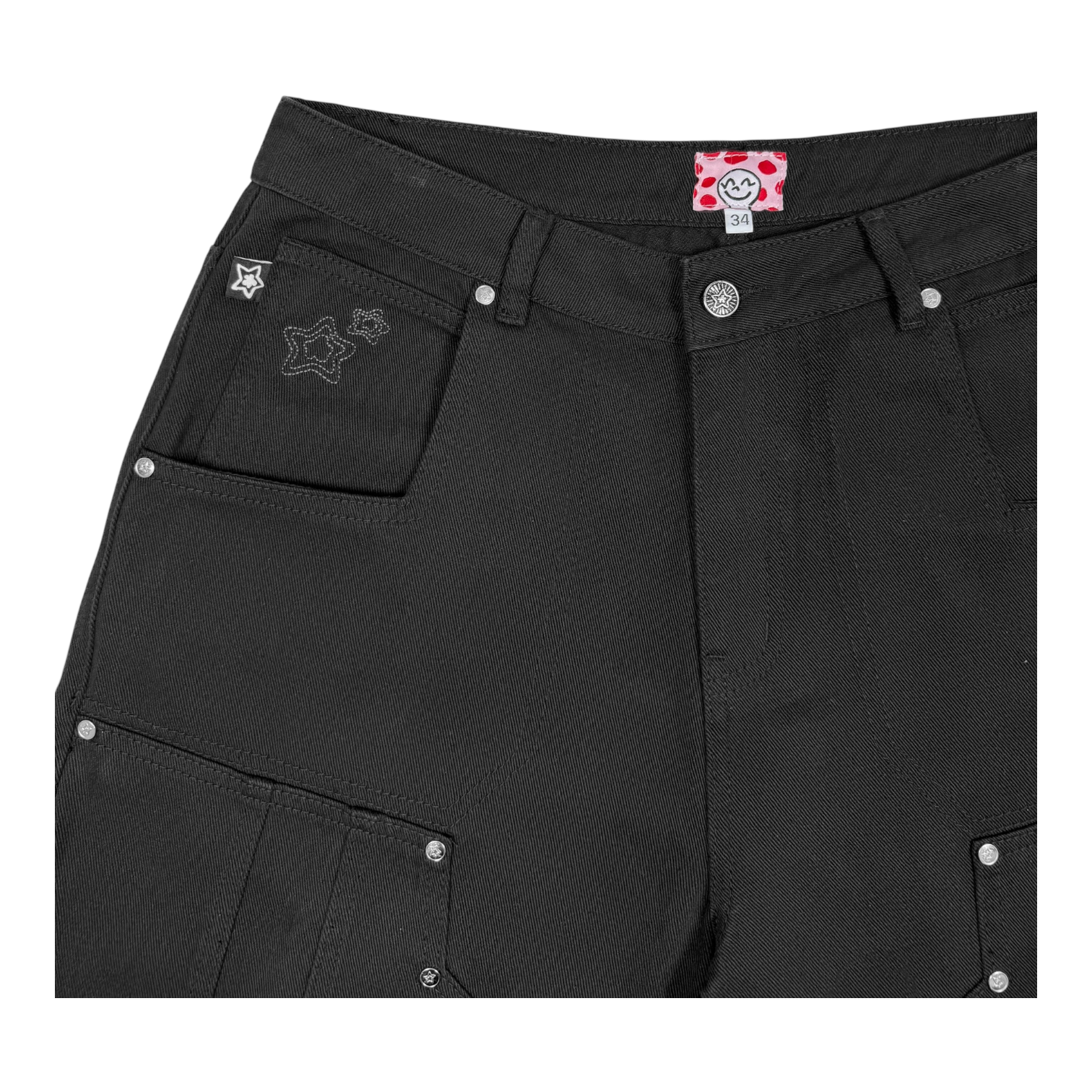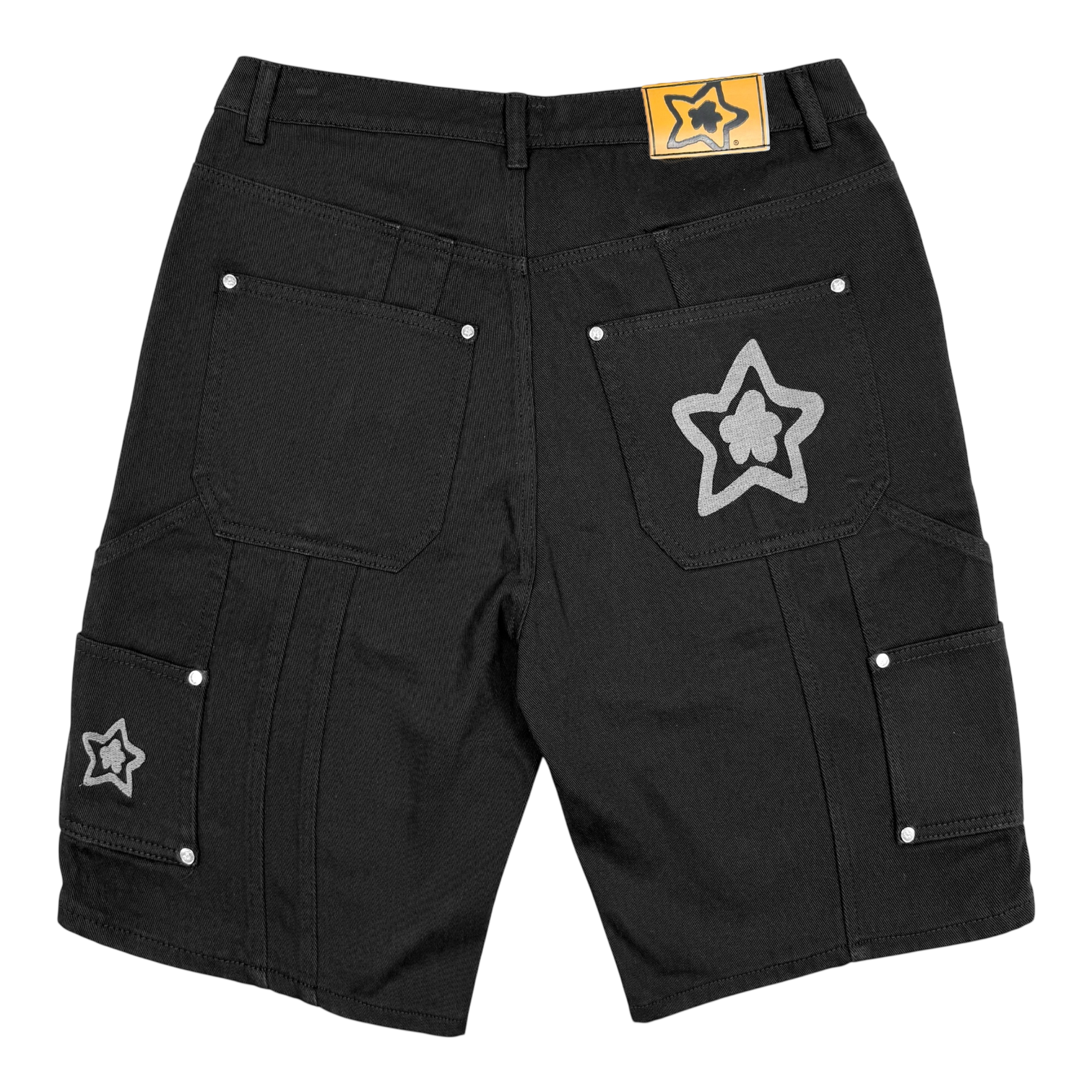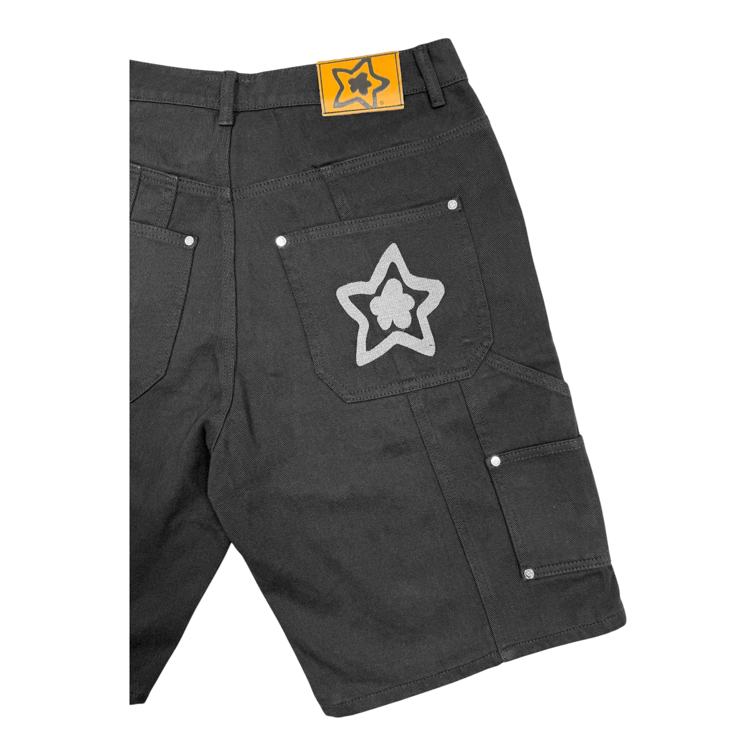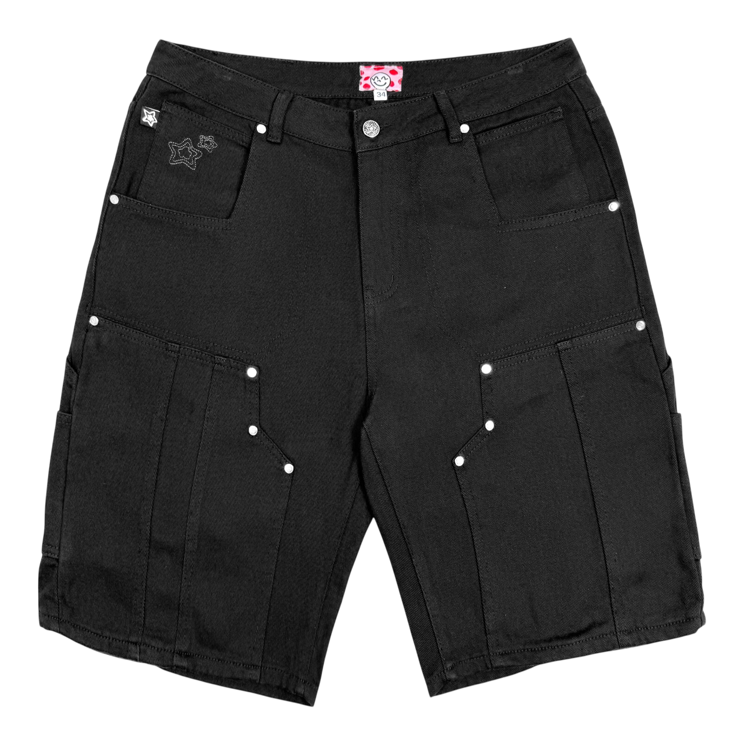 DOUBLE KNEE SEAM JEAN SHORTS BLACK